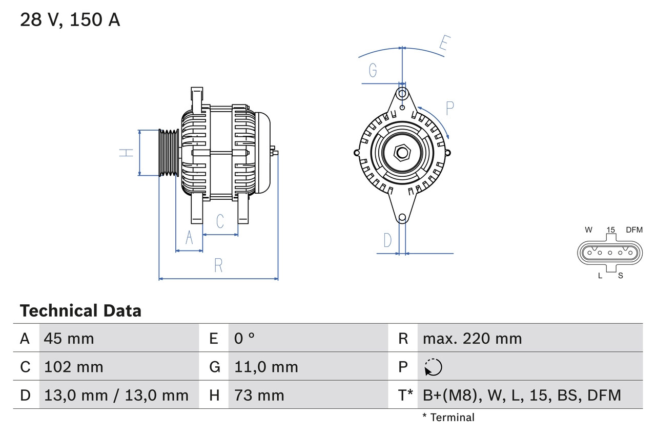 | Courant de charge de l''alternateur (A) | 150 |