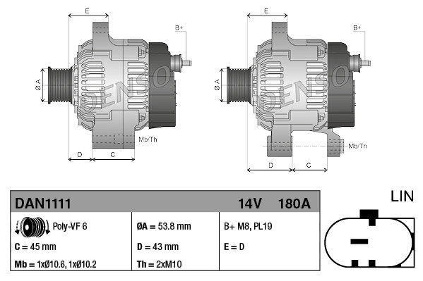 Alternateur DENSO DAN1111 compatible JAGUAR XF I, XF SPORTBRAKE; LAND ROVERDENSO371,36 €