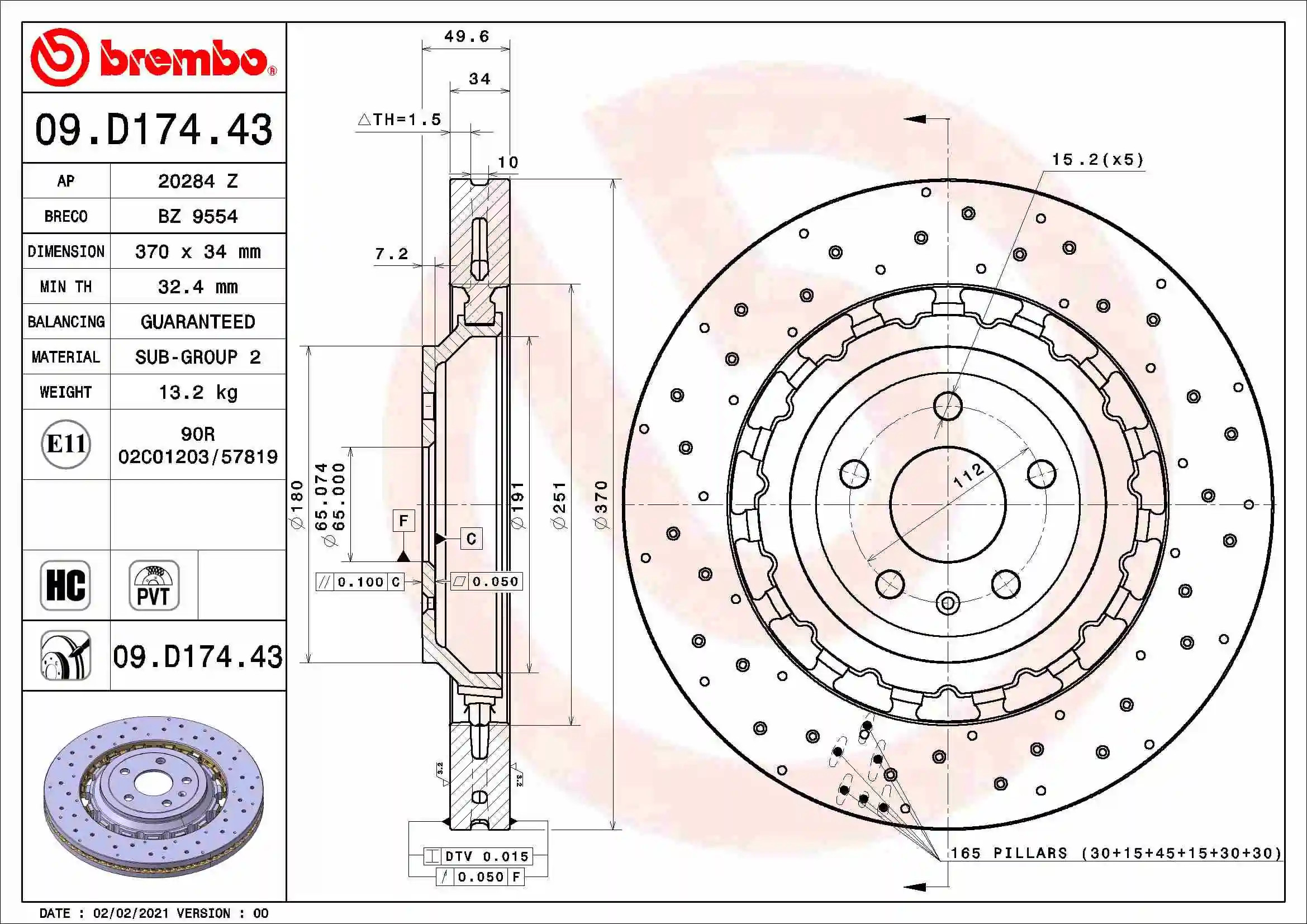 | Épaisseur du disque de frein [mm] | 12 |