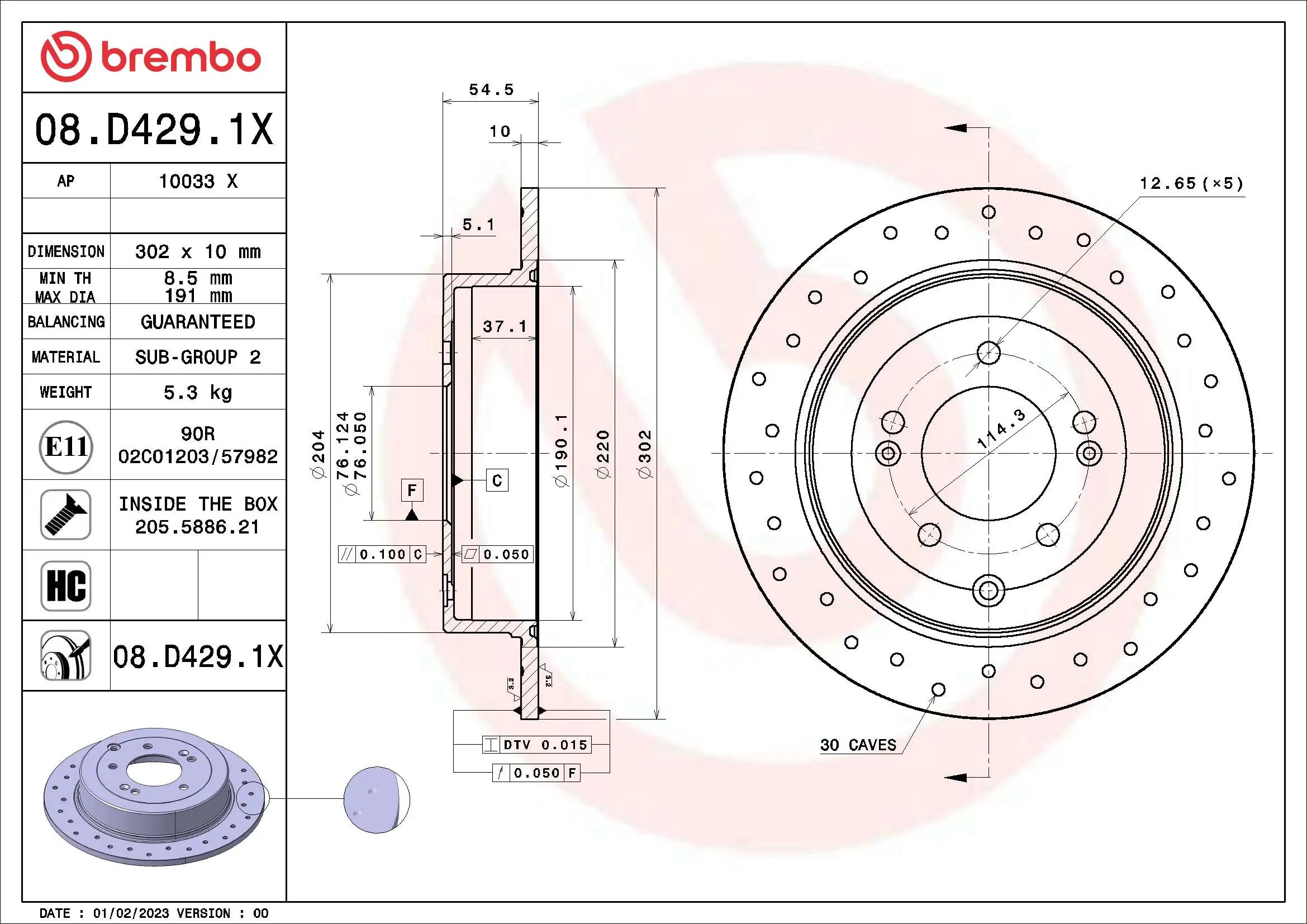 Disque de frein BREMBO 08.D429.1X compatible HYUNDAI IX35, TUCSON, TUCSON/SUVBREMBO86,01 €