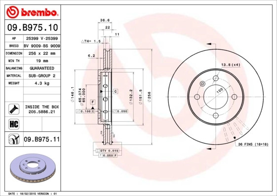 Disque de frein BREMBO 09.B975.11 compatible SEAT MII; SKODA CITIGO, E-CITIGOBREMBO50,48 €