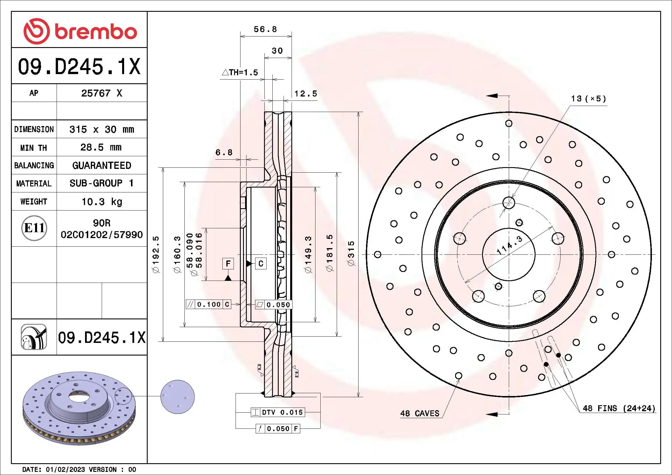 Disque de frein BREMBO 09.D245.1X compatible SUBARU LEGACY VI, LEVORG, OUTBACKBREMBO10,00 €