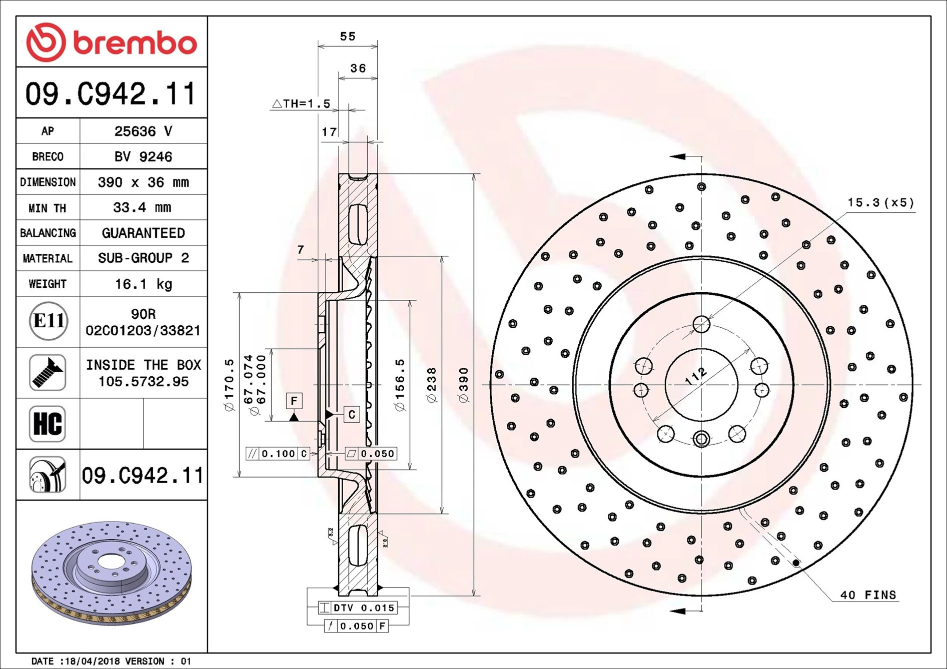 Disque de frein BREMBO 09.C942.11 compatible MERCEDES M (W164), R (W251, V251) 6BREMBO169,78 €