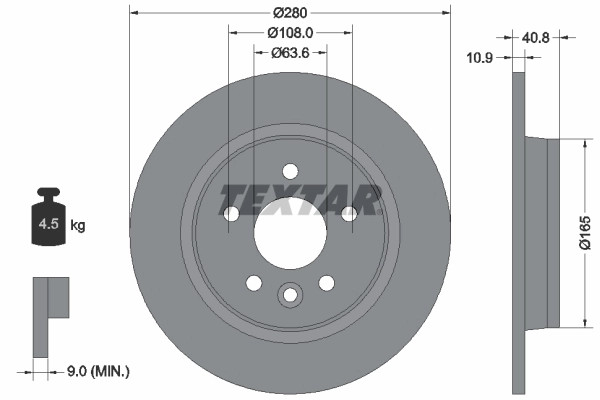 Disque de frein TEXTAR 92255603 compatible VOLVO C30, C70 II, S40 II, V40, V50TEXTAR35,77 €