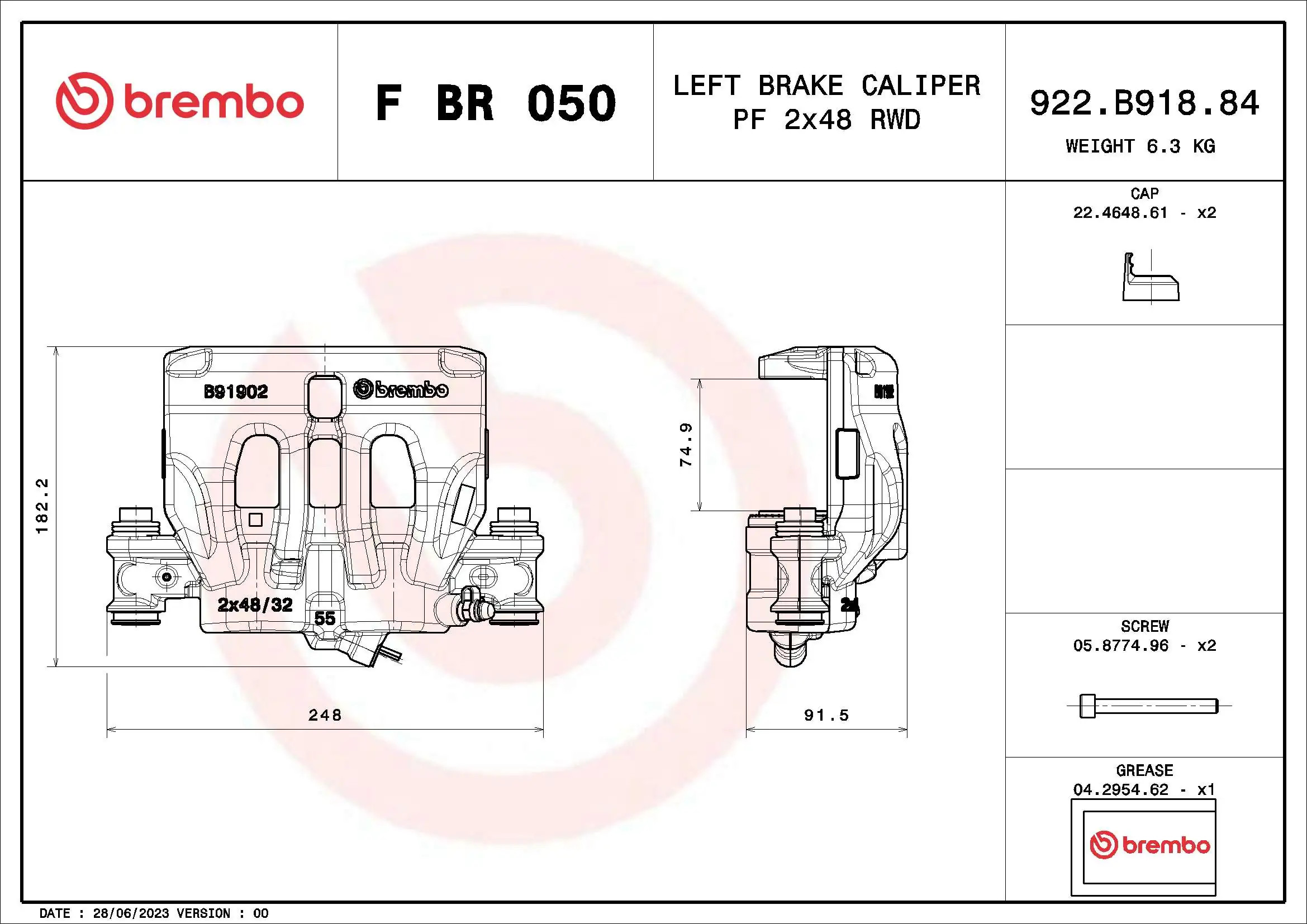 | Diamètre du piston [mm] | 48 |