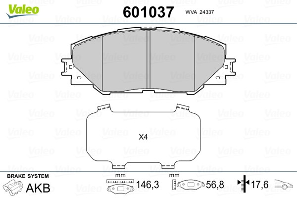 Kit de plaquettes de frein, frein à disque VALEO 601308 compatible VW MULTIVANVALEO226,54 €