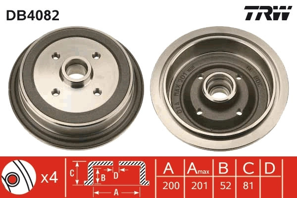 Tambour de frein TRW DB4082B compatible AUDI 80 B3, 80 B4, 90 B2, 90 B3, COUPETRW Engine Component82,76 €